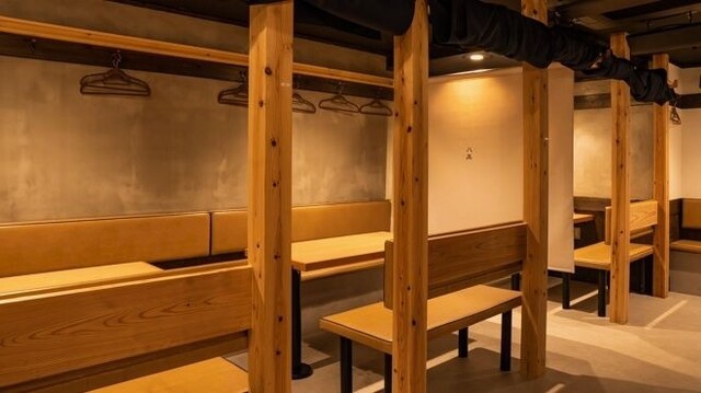 完全個室があるのかは分からず?我々はテーブル席、回りの席もテーブル席なのですが、ロールスクリーンの仕切りで目線を遮る感じで半個室とかではありません。