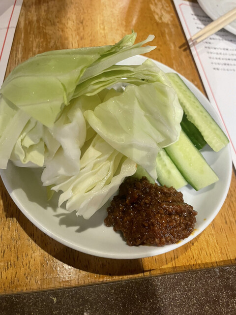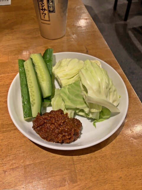 お通しのキャベツときゅうりのミソ田楽が妙においしい。シメの冷麺もおススメ!