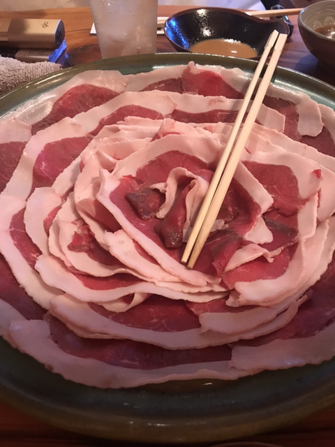 深山 ・ ◽︎ 猪しゃぶしゃぶ 猪肉2人前、野菜盛り、餅、〆の(ラーメンor雑炊) ・ご飯(香の物付) ・お酒 ・ この時期になると食べたくなる猪肉 ... 詳細を見る