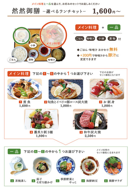 | 料理 | 魚料理にこだわる |
