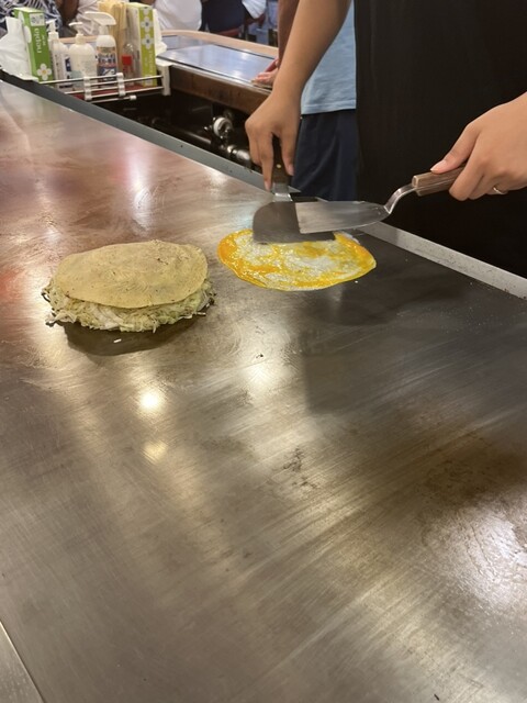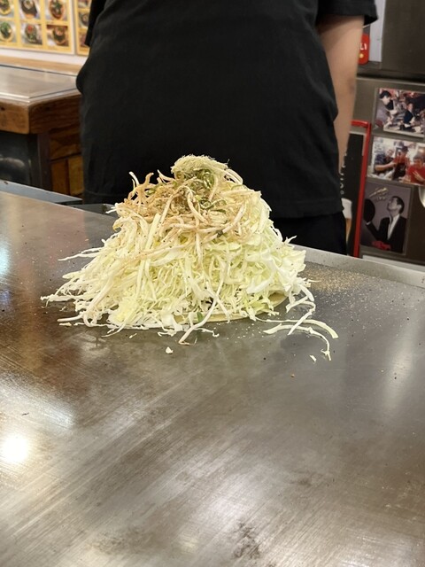 薄く引かれた卵にこれでもかとキャベツともやし。