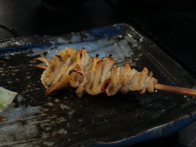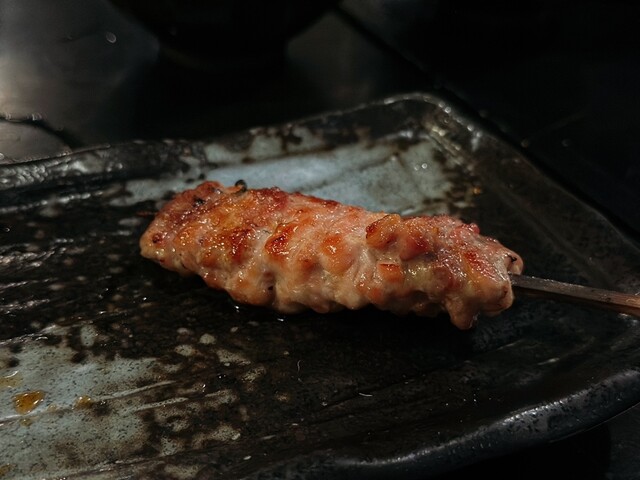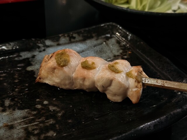串の最後はササミのワサビ乗せ。しっとり淡白な味わいのササミに添えられたワサビの風味と刺激が効果的。