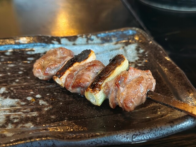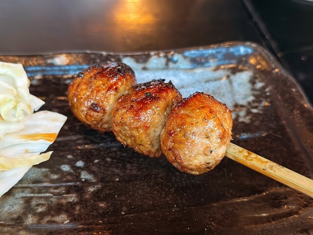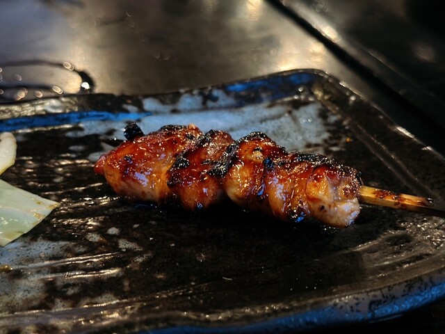 飲み放題付きコースのため、まずは生ビールをお願いし乾いた喉を潤す。お通しのキャベツをアテにまず一杯、すかさずお代わりをお願いしたタイミングで一品目のつくねが到着。焼き立てふっくらしっとり、タレの香ばしさがビールに合う。続いてはねぎま。ジューシーな正肉部分の肉汁がネギを包み込むように広がる。かしわはしっとりジューシーなおいしさの中にタレの味わいが馴染む。皮はぷにぷにした口当たりがクセになるおいしさ。