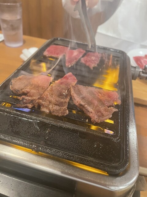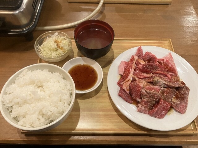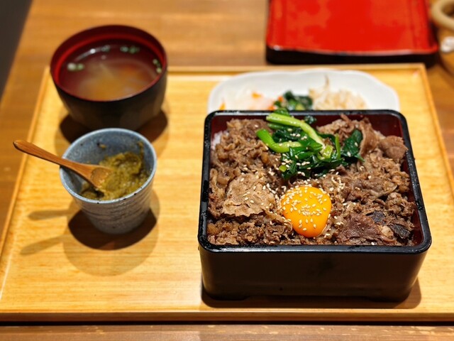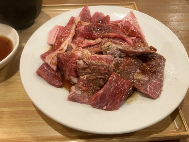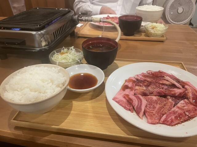 ランチで訪問。入店すると1階席は満席のため2階席に案内いただき、店内の階段を昇り小上がりの座敷スペースの際奥のテーブル席に座る。各席にロースターがセットされているため、先客の大半が黒毛和牛カルビセットなどの焼肉メニューをオーダー。焼肉メニューは充実しており魅力的なラインナップが展開されている中で、目を惹かれた和牛塩カルビ焼肉丼に決め、卓上のQRコードを読み...