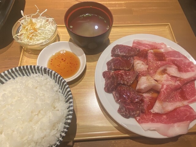 広島の繁華街本通りの南側、通称裏フクロに12:15。 今日のランチは肉肉肉な気分。 いつもの黒い牛さんを目指すと、その先に 「とみや別館」 ココには牛さんいないなぁ。まあいいか。 こちらは、2フロア営業。 1Fは焼きながら食べる焼肉、2Fは普通に定食などとのこと。 1Fは待たないとダメだったので2Fへ。 座敷に座って、焼肉定食950円をオーダー。 まずはサラダから。 続いて... 詳細を見る