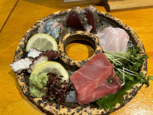 店名にある魚はもちろん、肉、野菜、〆のご飯まで、バラエティーに富んだメニューをリーズナブルに味わえる立ち飲み店です。生ビール350円で、仕事帰りのサク飲みにも最適。0次会はもちろん3、4次会もぜひご利用ください!また、一番人気の「刺身盛合せ」は、旬の魚を5種類を豊富に盛りあわせて、650円の驚き価格でご提供!上質でコスパ最高のメニューを思う存分お楽しみください。