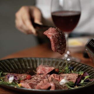 また一品から注文いただけるメニューでは、厳選和牛の他こだわりのジビエ、地鶏、お野菜などもご用意。