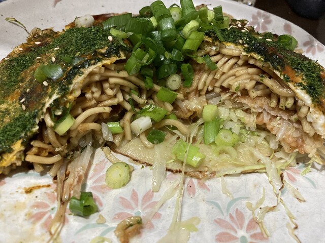 広島だから本場のお好み焼きを食べようとホテルのあたりを徘徊していた際に建物の2階に見つけて入った店。メニューを見るとコースが飲み放題で、3500円から500円刻みで5000円まで5つある。ちょっとコースまでは食べられないと思い、アラカルトのページを見るとお好み焼きの他に鉄板焼きのメニューも並ぶ。お好み焼きは関西風にもできるそうだが、ここは迷わずに広島風を選択する。 肉玉そば、肉玉そばごはんが... 詳細を見る