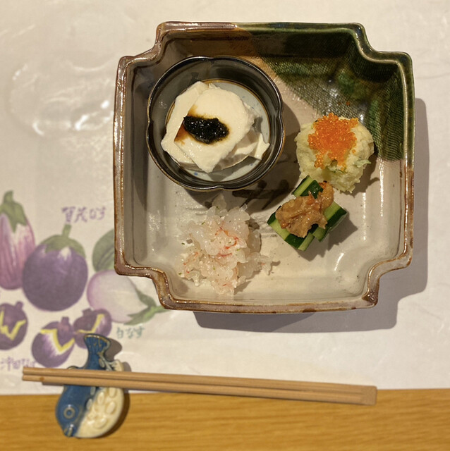 当店では、その時季の旬素材が持つ味や香りを大切した創作和食をご提供しております。魚介は新鮮な天然ものを仕入れているため、お品書きは週ごとに変化し、飽きることがありません。調味料も基本的に無添加のものを使用。日本酒は店主こだわりの銘柄を多数取り揃えました。店内は落ち着いた雰囲気の和空間。ゆっくりと寛ぎながら食事とお酒をお楽しみください。尚、お料理は3500円のお任せになっております。