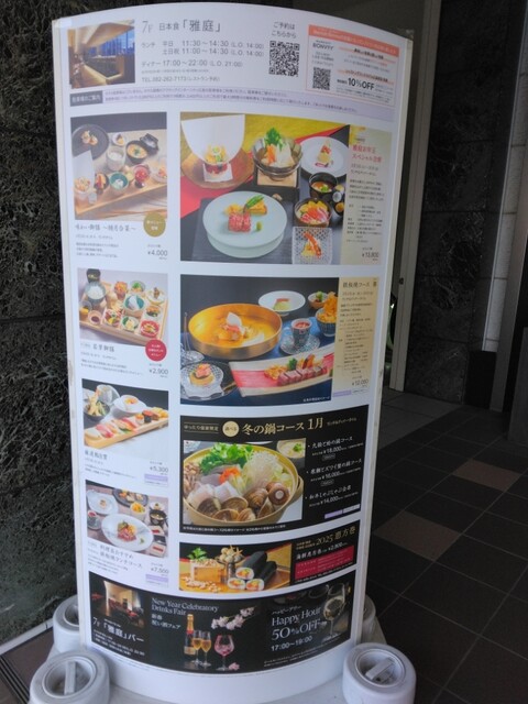 初めて接待でシェラトン内の雅庭さんに伺いました。リーズナブルな会食のコースと飲み放題を付けて接待としては非常にリーズナブルでした。