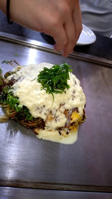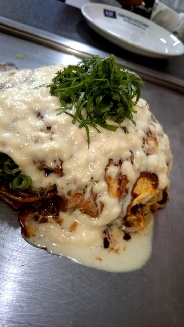 お好み焼き史上最大級のチーズ。たっぷりチ...