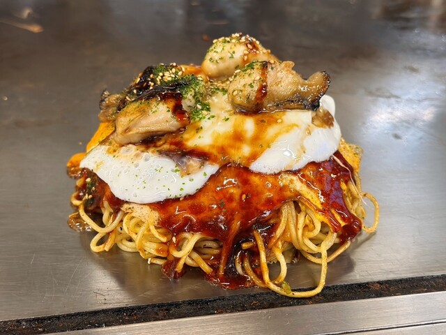 肉玉そば牡蠣トッピング(1,000円+800円) 広島駅前の駅前ひろばにあるこちらのお店にランチで訪問。店舗のある6階にエレベーターで昇ると、十数件のお好み焼き店が軒を連ねて... 詳細を見る
