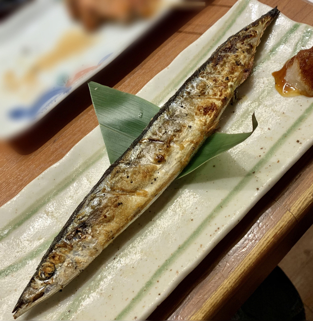 串焼き・さんま・お新香をいただきます。