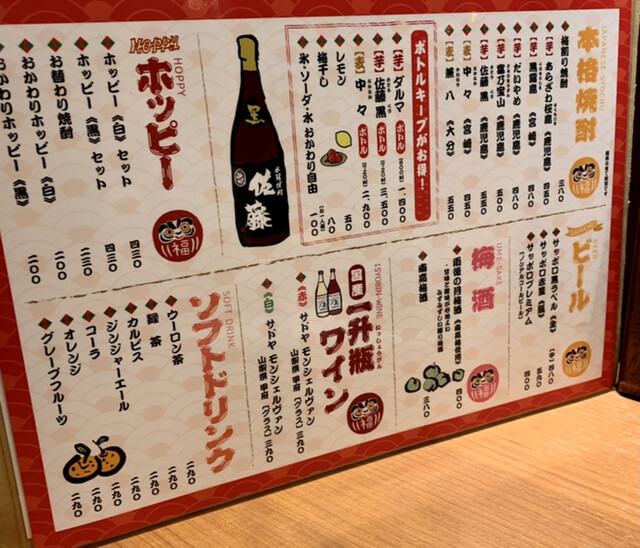| ドリンク | 日本酒あり、焼酎あり、ワインあり、カクテルあり |