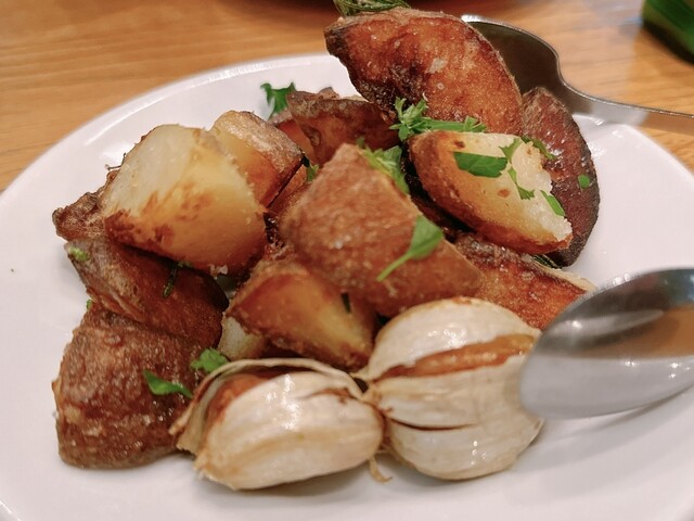 ステーキの火加減と表面のカリカリ、中のジューシー感がよい。