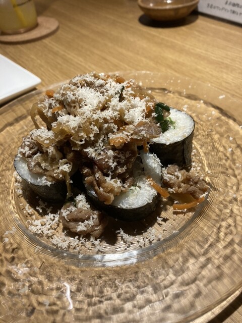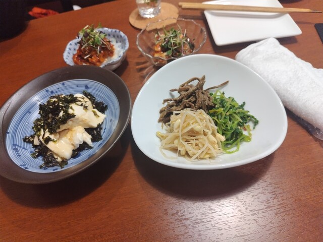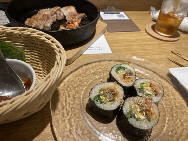 “より食べやすい”を求めた、お洒落なスタイルの韓国料理を気軽にご堪能いただけます。小箱に手作りの前菜が上品に並んだ「前菜6種盛」をはじめ、お酒が進む濃厚ダレの「チュクミ」や「こぼれキンパ」など種類豊富にご用意。定番のマッコリをはじめとする、お酒好きの店主選りすぐりのドリンクと共にお楽しみください。木の温かみのある落ち着いた空間は、お一人様のちょい飲みから大人数の宴会まで幅広いシーンにぴったりです。