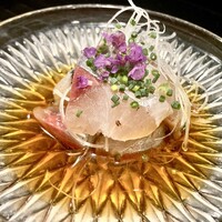 カウンター席でいただきました。 (カウンターのみです) おまかせコースでございます。 熟成刺身美味いすね! ワサビも目の前で擦ってくれます。 普段あまり飲まない日本酒... 詳細を見る
