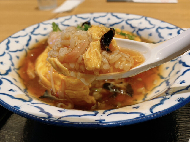 ランチメニューは五目そばつゆライス、天津飯、青椒肉絲、回鍋肉、海鮮炒めの各定食が展開される中、レギュラーメニューとして五目や海鮮、あんかけなどの各種チャーハンや麻婆豆腐、麺類などおいしそうなラインナップも展開されており、どうするかかなり悩み抜いた結果、ランチメニューから天津...