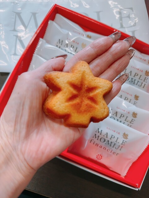 お土産にいただいた、メイプルもみじフィナンシェ もみじの形をした可愛いフィナンシェは、一口噛むと、サクッとした食感。 口に入れた瞬間にメープルの香りがし、そのあとにアーモン... 詳細を見る