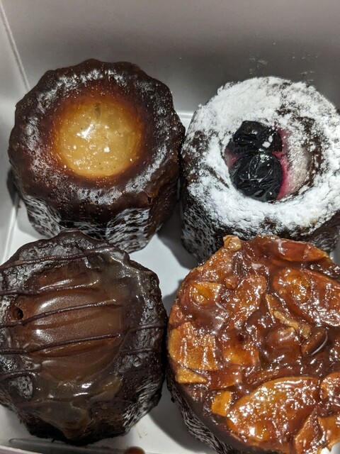 ふと食べたくなり、娘にメールを… 娘が選んだ物だけど 私は1つだけ交換!赤いのを食べました。久しぶりのカヌレは めっちゃ美味しいです。もう1つはショコラを 外はカリッと中はモ... 詳細を見る
