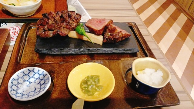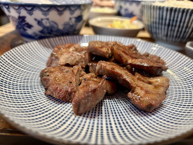 ランチで訪問。店前に待ちはなくスッと入店し、店奥のテーブル席に案内いただく。メニューを確認すると、牛たんの各種定食が目白押しでラインナップされており目移りしてしまう。取り敢えずは初訪でもあることからベーシックな牛たん定食をオーダー。牛たんでイメージする「ねぎし」や仙台の各店は麦飯のお代わり自由なため同等なシステムと思いきや、時世を反映し大盛りは有料...