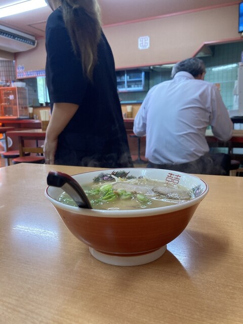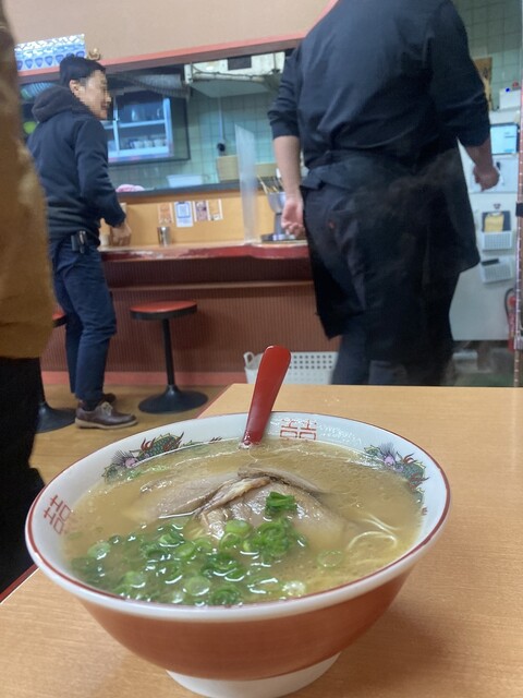 カウンター3席と後はテーブル席がずらりで結構豚骨の香...