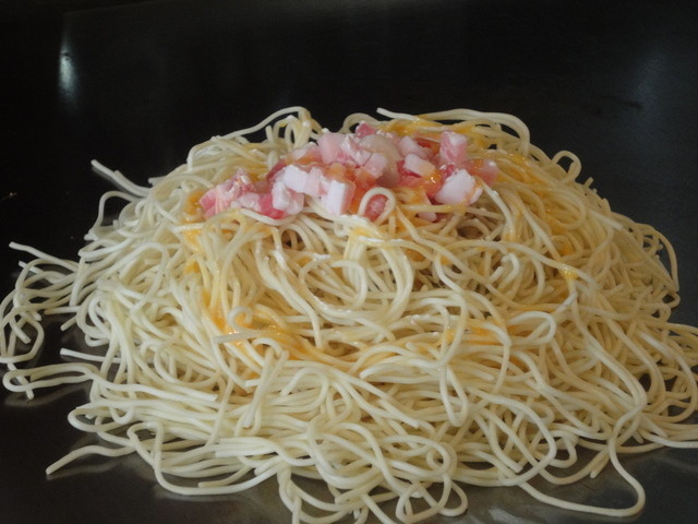 キャベツ・麺・豚バラ肉の脂の甘みをそれぞれ感じることができ、飽きの来ない1枚となりました。