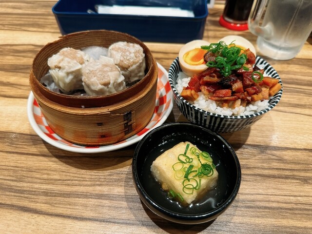 黒豚肉汁焼売3個(363円)、焼豚ご飯(539円) 少し遅めのランチで訪問。17時過ぎに伺ったためお通しとして揚げ出し豆腐付き。 カウンター席に座りメニューを確認。メインの... 詳細を見る