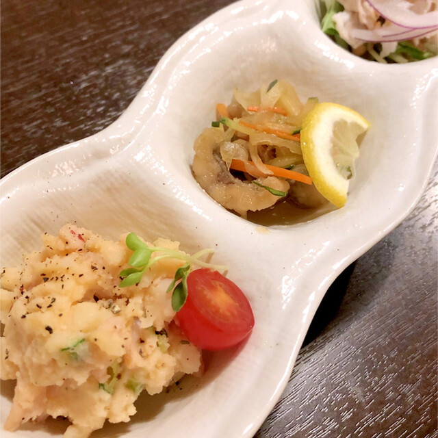 安芸郡坂町にひっそり。一見さんには少し入りにくい雰囲気の暖簾をくぐるとカウンターとテーブル席少々、カウンターの上におばんざいが並びとてもいい雰囲気。店内は明るく活気があります。どうやら人気店の様で満席でしたが、ひと席作ってくれて何とか入る事ができました。うれしいですね。