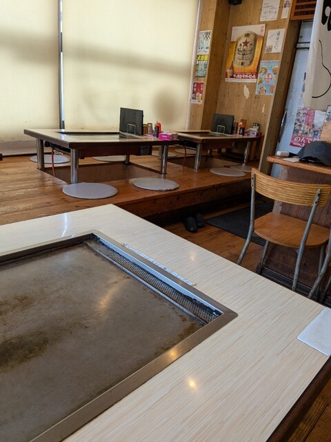鉄板テーブルの座敷席がメインのお店で、一応カウンター席もあったけど現在は使われてないのかな?
