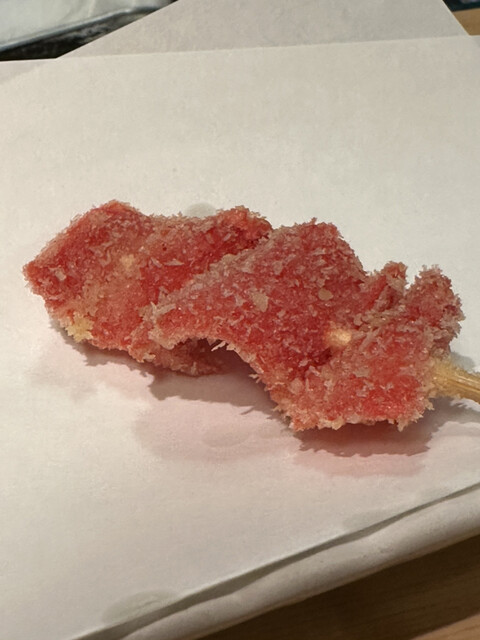 前から気になっていた五日市で串揚げを長くやっているこちらの店に訪問した。 どの串揚げもあっさりとした口当たりで、何本もいける。 また、その他の肴も良い味。 日本酒は店主が島根... 詳細を見る