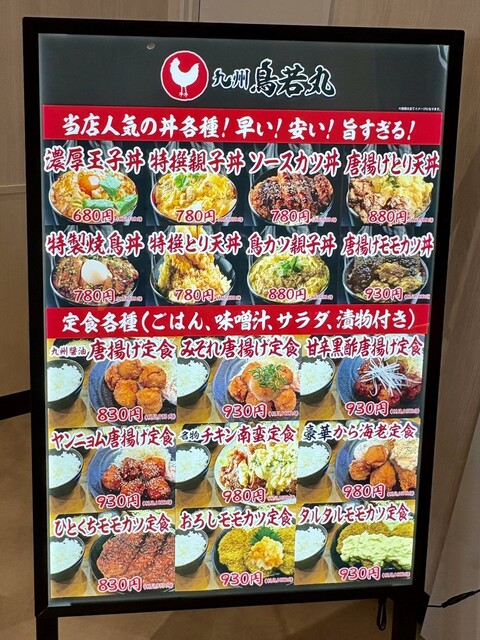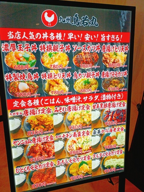 (鳥若丸)さん、鳥料理に特化しており種類豊富に丼ものや定食が取り揃えられています