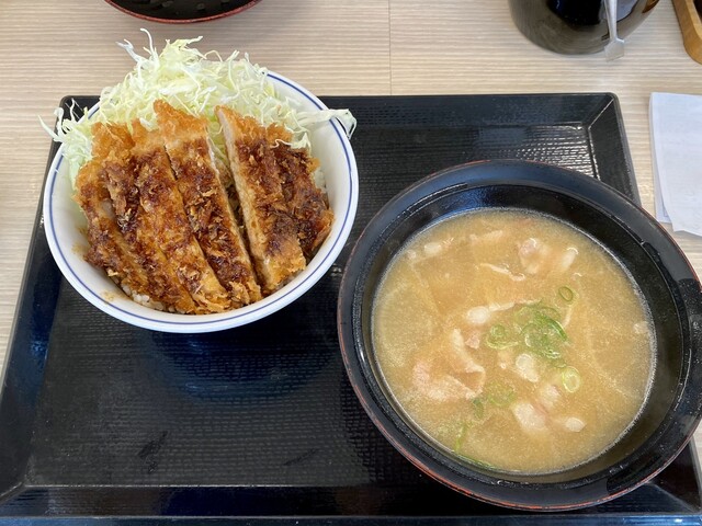 それで今回は「ソースカツ丼(梅)」税込572円のご飯大盛+143円と、「とん汁(大)」198円を注文しました。