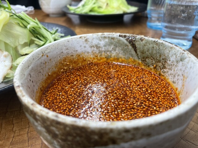 広島つけ麺の中では特徴的な中太のコツコツっとした麺は食感で絶...