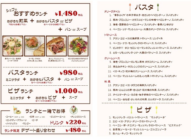 | 空間・設備 | オシャレな空間、落ち着いた空間、オープンテラスあり |