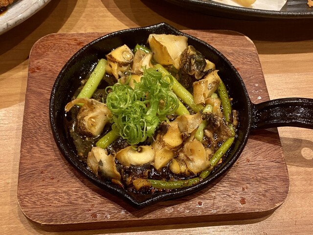 つぶ貝ネギ塩ガーリック鉄板炒め