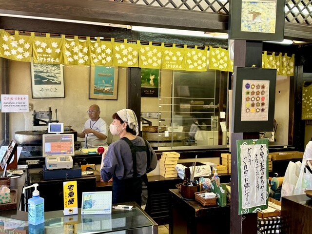 宮島のフェリー乗り場の近く、歩いて1,2分のところにある老舗のもみじ饅頭のお店。 機械で焼いてるところが多い中、こちらのお店は数少ない(唯一?)手焼きで焼いているもみじ饅頭とのこ... 詳細を見る