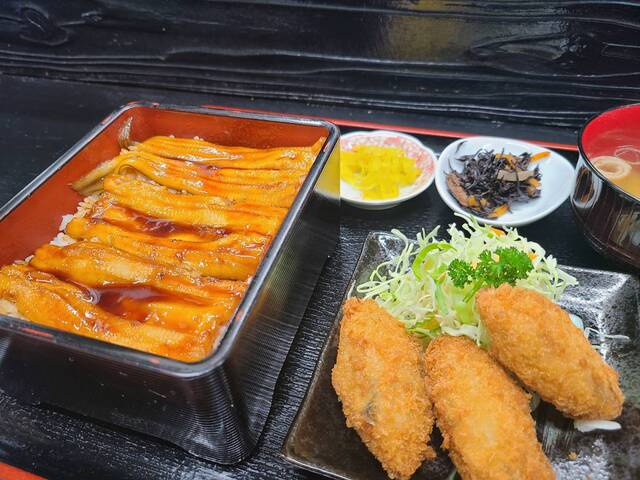 あなご重とカキフライ3個の快心友セット(2800円)にしました。
