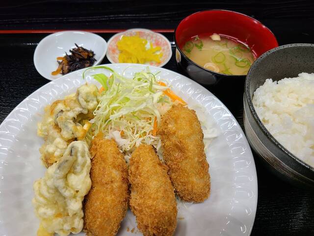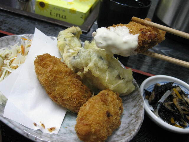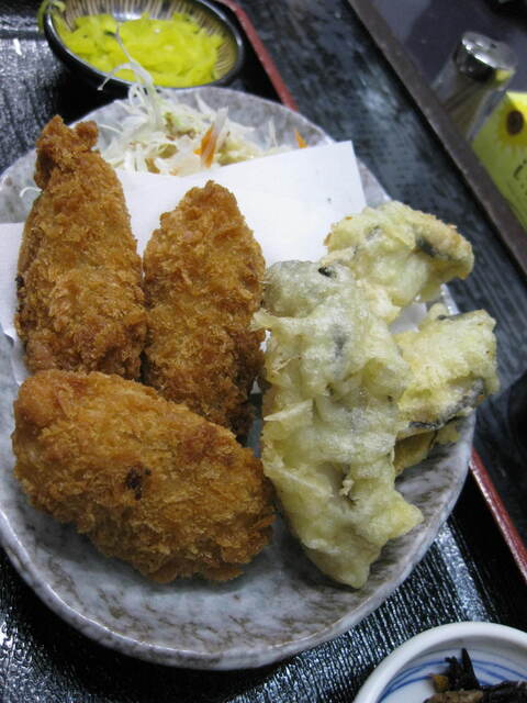 カキフライは天ぷらに変えられたので、友人とカキフライ、天ぷらで頼んで分けることにしました。