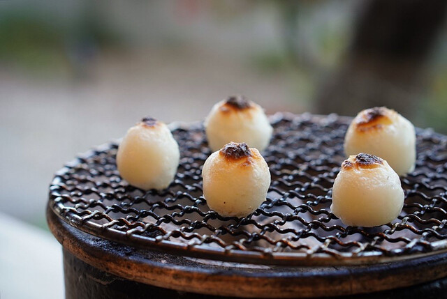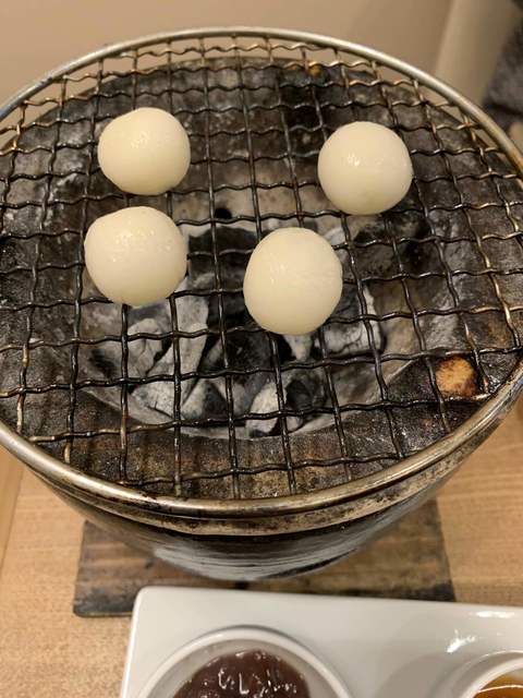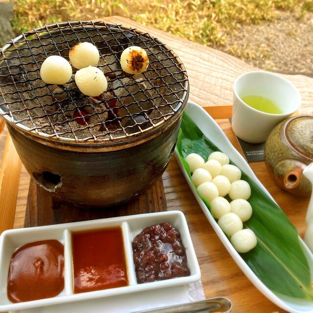 焼いて食べるお団子は、楽しいし、味が3種類あるのも嬉しいです。