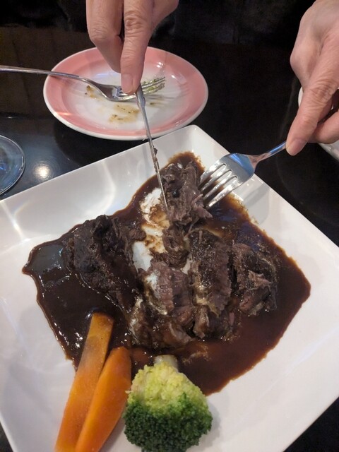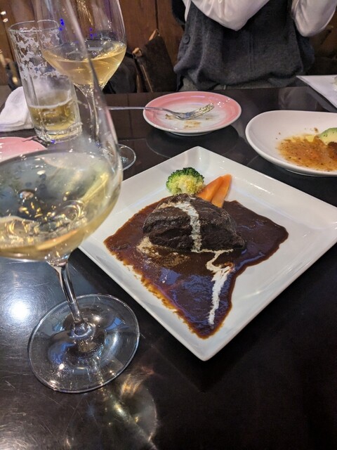 家内と食事に来ました。お酒とお肉料理が食べたくて、、 おすすめの牛ほほ肉デミ煮込み、そしてワインにピザ、生ハム、サラダなど色んなメニューがあります。この日は、イマナマに収録されて放送される日でした。テレビを観ながら、色々とエピソードを聞きました。料理、アルコールも美味しく楽しいひとときでした。