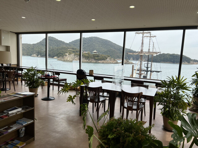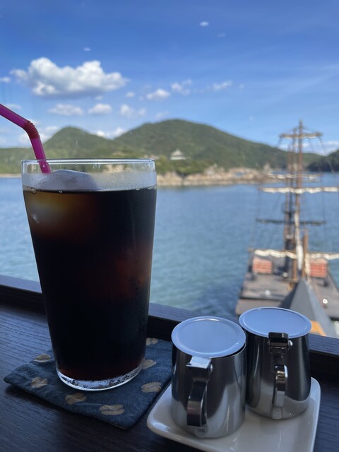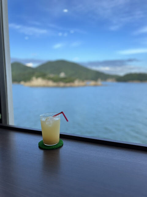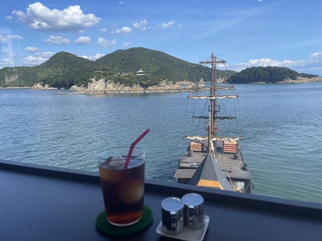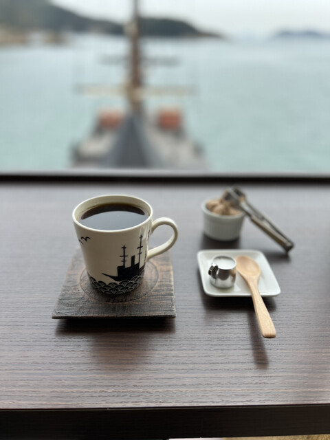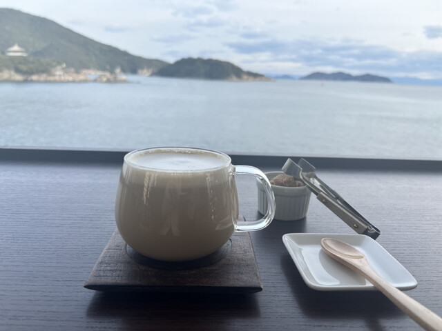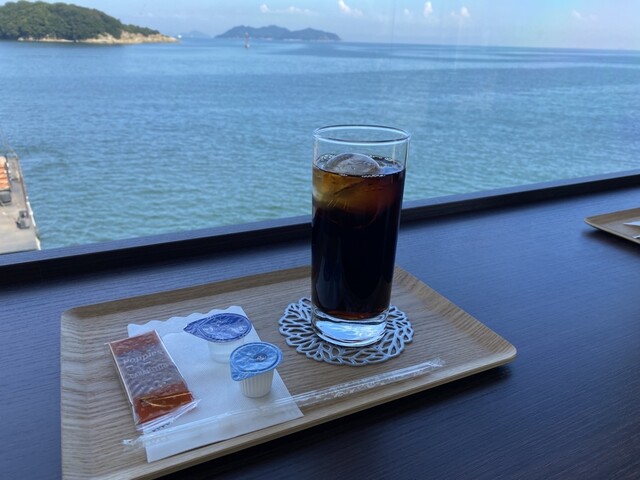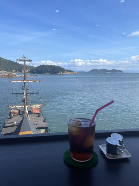 駐車場の近くにあったカフェ 提供は飲み物とスイーツのみ 500円のコーヒーに軽いクッキーもついてきました カウンターは海と島と仙酔島への船が見えます。 この船がかなり年季入... 詳細を見る