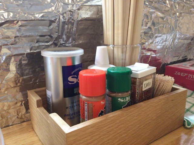 と、いうのも前回なんとなくしっくりこなくて、再訪せずにいましたが、場所と時間的な制約から再訪です。先客が1名、常連の方のようで、店主が作りながら話をしています。