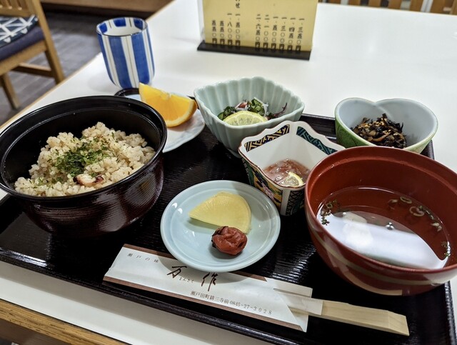 広島・瀬戸田にある郷土料理のお店「万作」さんへ。 お目当ては名物の蛸飯定食。 炊き込みご飯はふっくらとしていて、タコの旨みがしっかり染み込んでいます。ぷりっとした食感のタコ... 詳細を見る