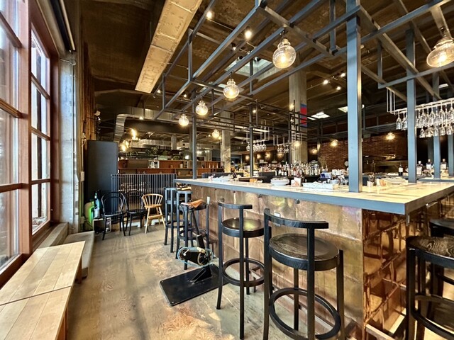 倉庫を改修した複合施設の中に構える、広々としたお洒落な空間