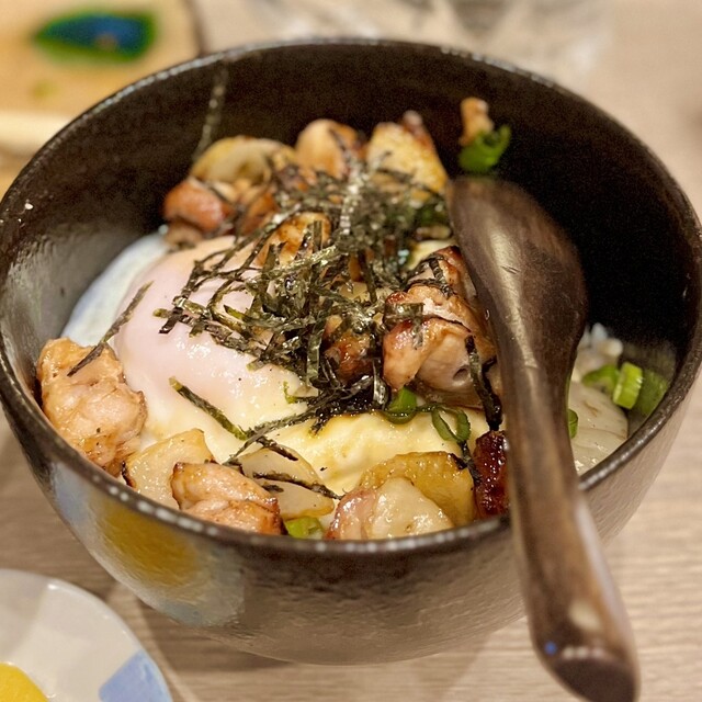 焼き鳥以外のメニューも驚くほど美味しくて、「もも肉のたたき」はしっとりとして旨味が濃く、タレの加減もちょうどよくてお酒が進みます。唐揚げは外がカリッと中はふんわり、しっかり下味がついていて、何個でも食べたくなる味でした。そして締めに頼んだ「焼き鳥丼」がまた最高!香ばしいタレと炭火の香りがご飯にしみていて、一口ごとに幸せを感じました。