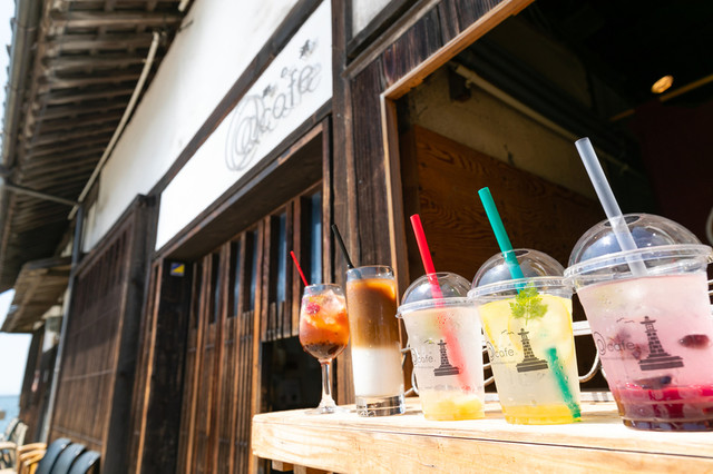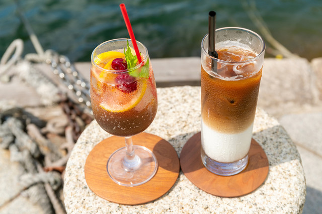 店内では、自家農園のオーガニック食材を使用した料理はもちろん、地元の焙煎職人がオリジナルで焙煎したコーヒー豆を使用したラテなどは、鞆の浦の潮風に合う一杯です。