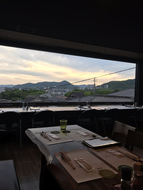 景色が良いということで窓際のカウンター席を予約したけど、西日がすごくてカーテンしまってた(笑)
