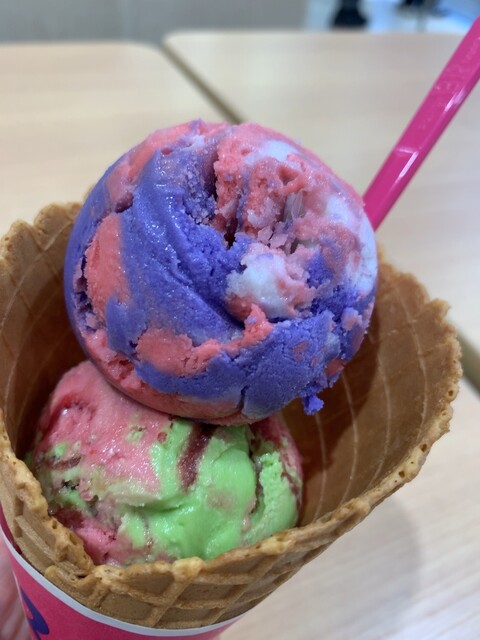 もう何年振りだろうてくらいのサーティワン。 せっかくなのでスモールのダブルでどちらも期間限定の上が【魔女のトリック】で下が【ベリーミーツピスタチオ】にしました。どっちも見た目が... 詳細を見る