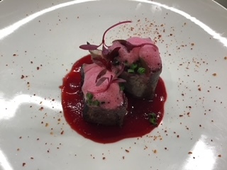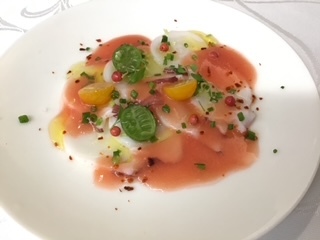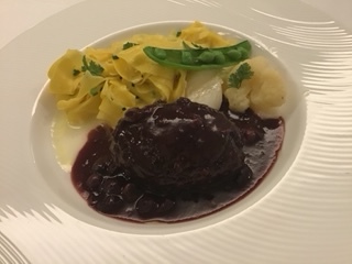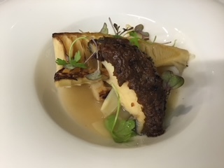 アミューズ、オードブル2皿(エビなど)、椎茸のポタージュスープ、広島牛のほほ肉の煮込み、デザート、コーヒー(お菓子付)。とにかくセンスと味の良さ、付け合わせの...
